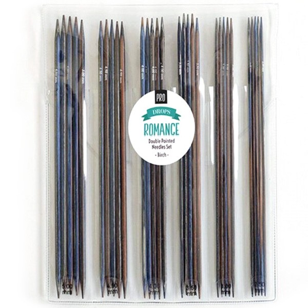 Drops Pro Romance virbalų rinkinys kojinėms – pagaminti iš lakuoto beržo, virbalų ilgis 20 cm, virbalai nuo 2,5 nr. iki 5 nr.