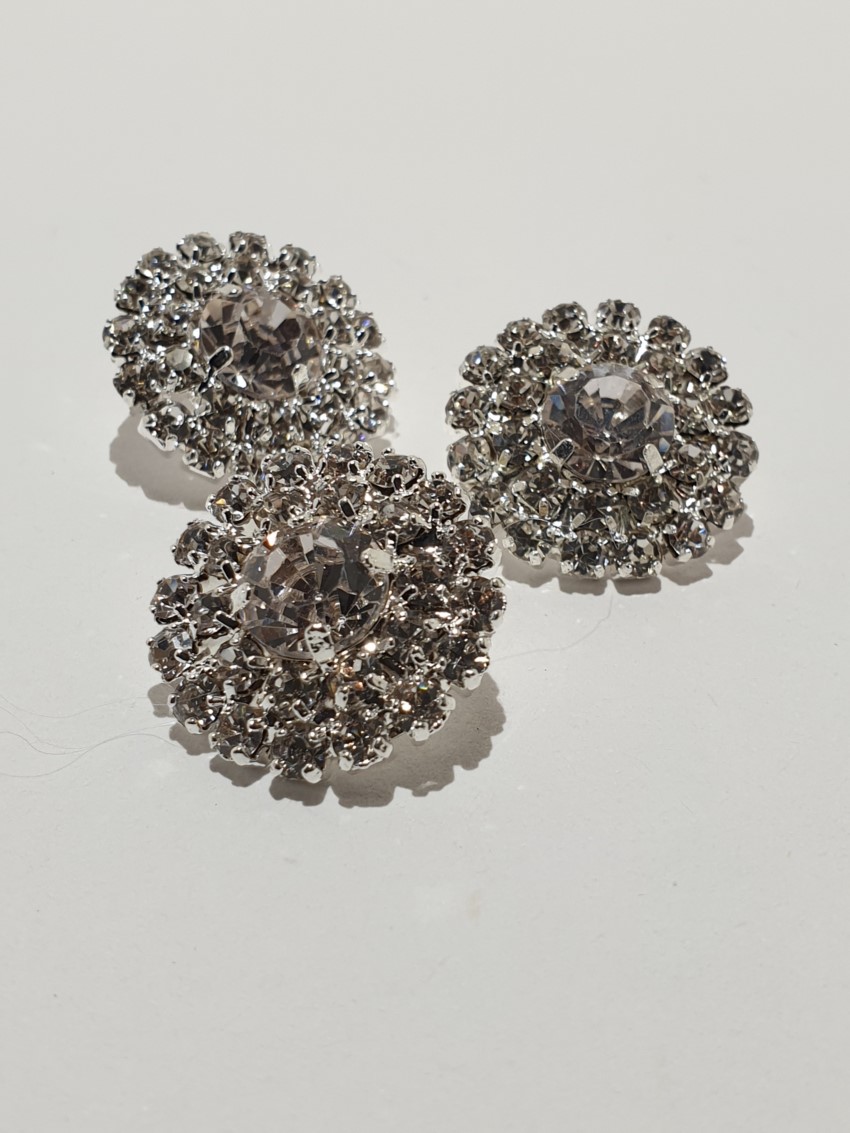 Prisiuvamos, metalinės sagos dekoruotos stiklo akutėmis suteiks Jūsų mezginiams puošnumo. Sagos skersmuo 18 mm.
